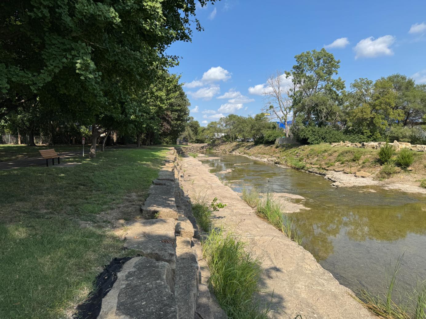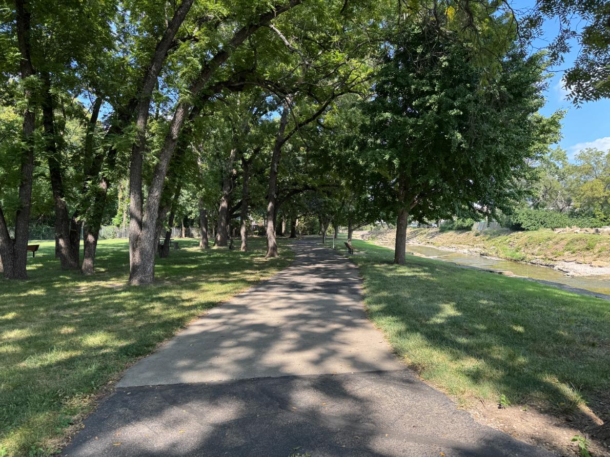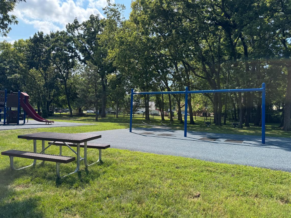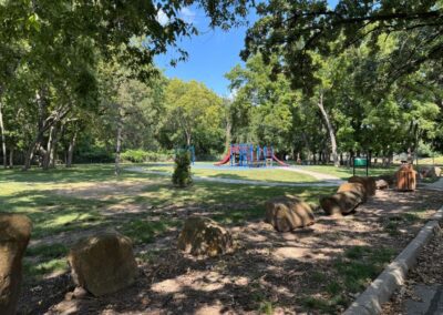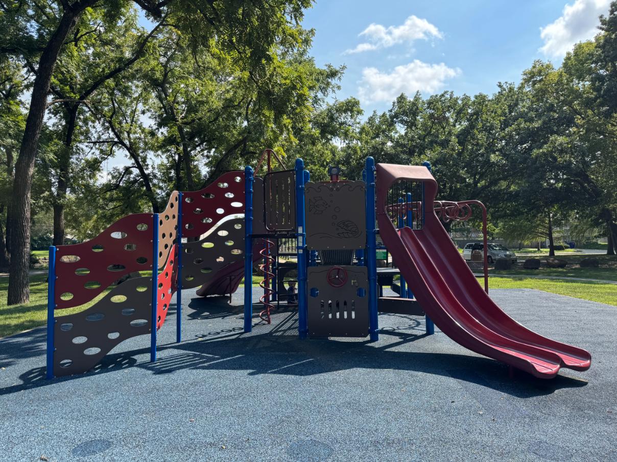 Campbell Park Playground in Merriam, Kansas, is a quiet neighborhood spot that sits alongside the scenic Turkey Creek Streamway Trail. This playground is surrounded by mature trees that offer generous natural shade, making it a comfortable place to visit even on warm afternoons. While the play area itself isn’t especially large or toddler-focused, (other than toddler swings) it’s clean, well-maintained, and features benches that overlook the creek. The park includes grassy picnic areas with tables and a small dedicated parking lot, ensuring easy access. There are no restrooms or fencing, but the proximity to the Turkey Creek Trail adds appeal for families who enjoy combining playtime with a short nature walk or bike ride. McLain’s Market, a local favorite for coffee and pastries, is just over a mile away. Campbell Park is a peaceful and shady spot ideal for a simple playground outing or a quick stop along the trail.